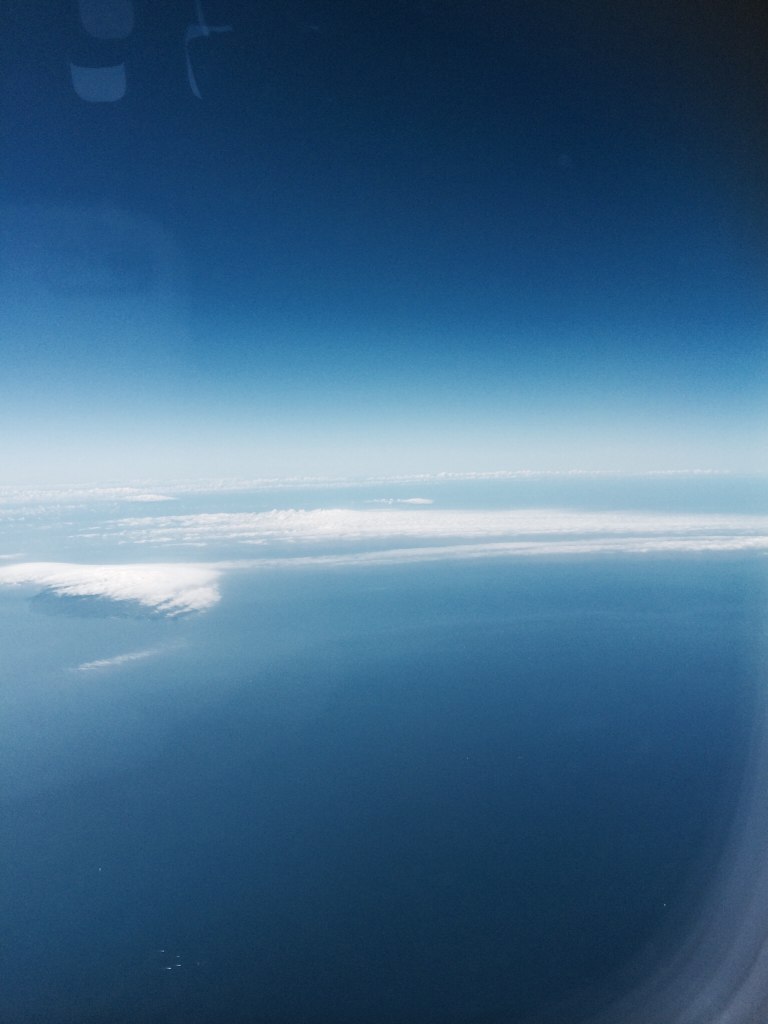 飛行機、いつもは通路側を取るのですが、今朝は珍しく窓側を。あいにく富士山は反対側でしたが海と山と空を見ながらボーッと。