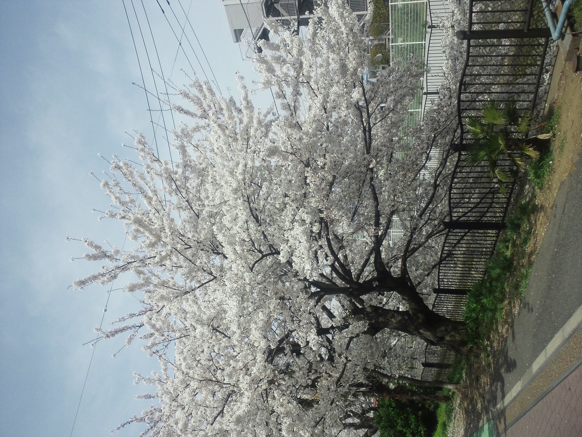 自宅から駅までの道、毎日自転車で猛ダッシュしています。その途中に、先週から満開になった桜が!