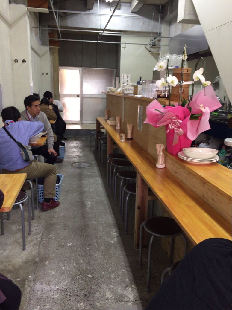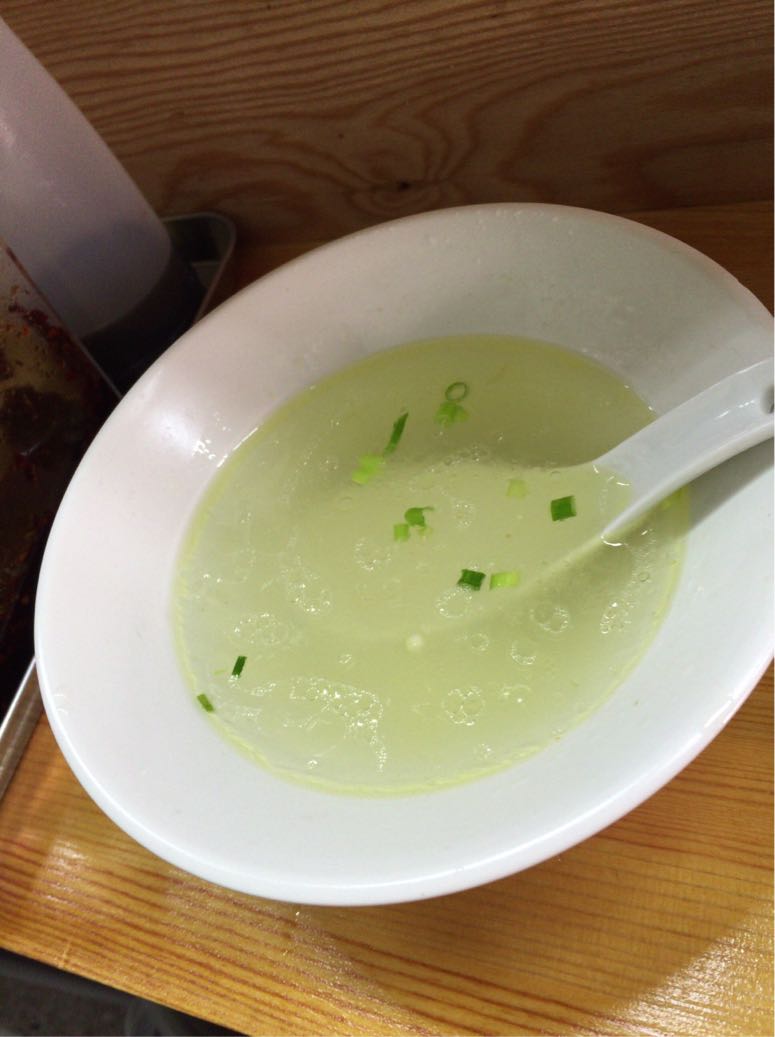 となりの男性はスープにランチ無料ライスとラー油を入れてクッパみたいに