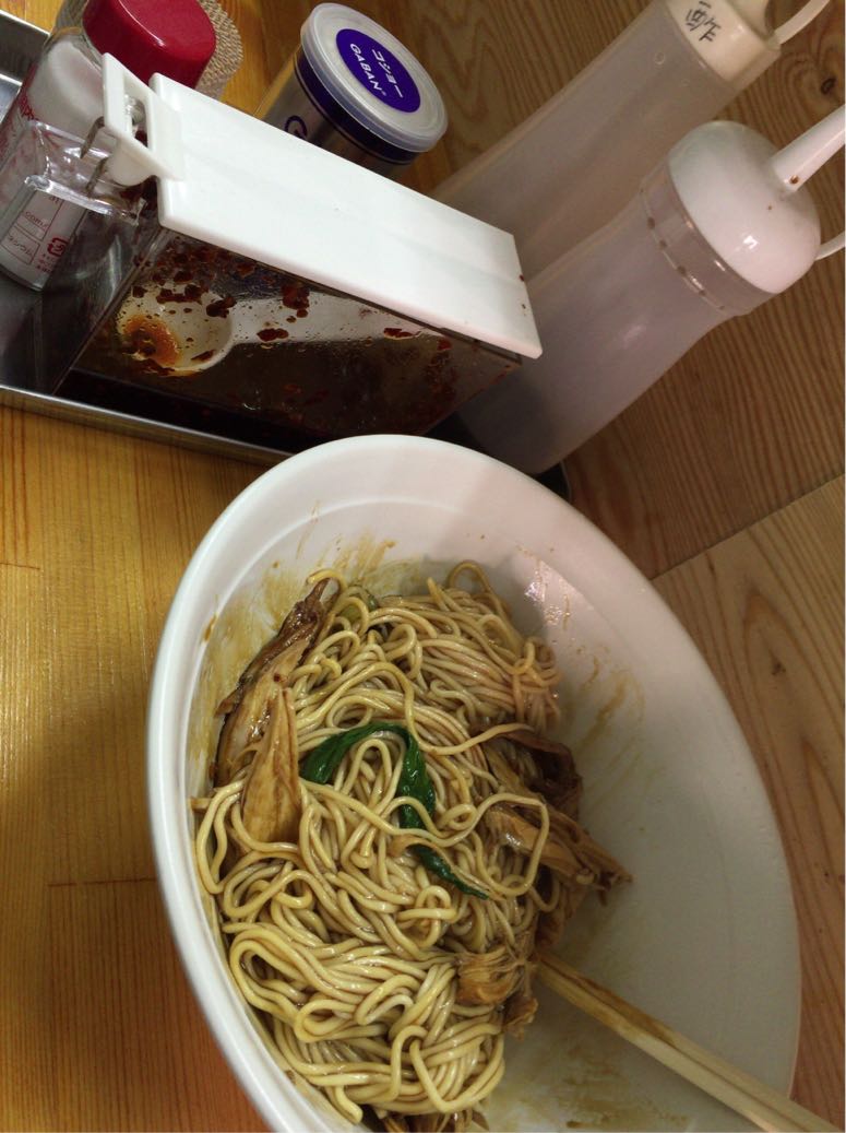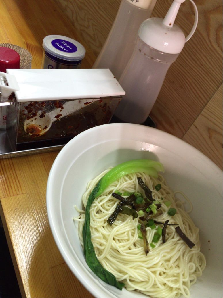 しかし、カウンターにある手作り辣油とお酢をかけると。
