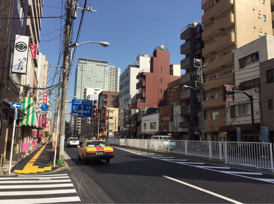 ドラから錦糸町駅に向かうとガソリンスタンドとトヨタのある十字路に当たります。