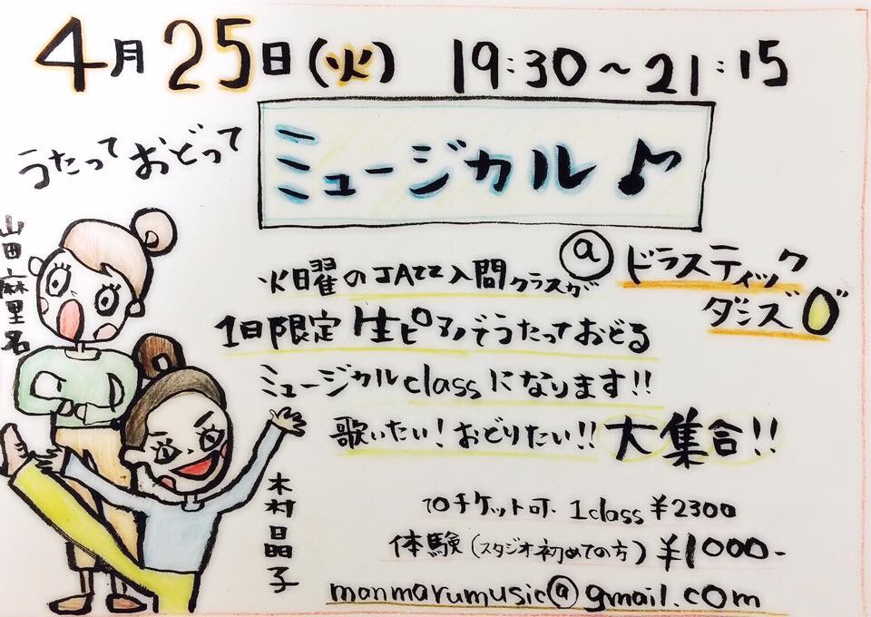 火曜ジャズ入門クラスが1日限定本格!ミュージカルクラスになります。