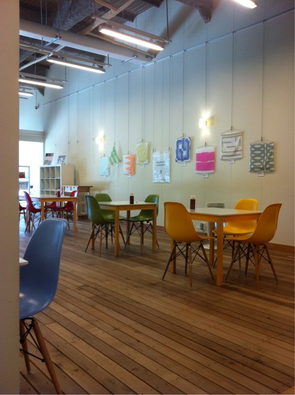 外の扉からはわからない、居心地よく明るい店内。