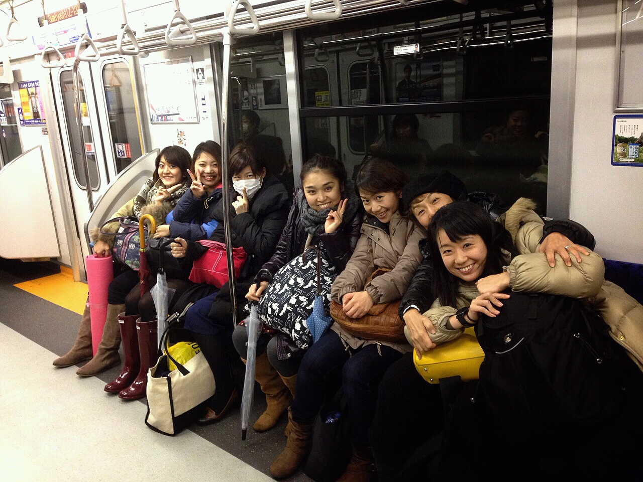 地下鉄の中です。うますぎる焼鳥屋さんピンちゃんで忘年会、いやはや食べる食べる、食べまくる、飲みまくる、ドラはそれが一番の売り、元気で食べて踊って!来年も頑張っちゃうよー!おじさん御馳走様でした。ポンポコリンの清美でした。