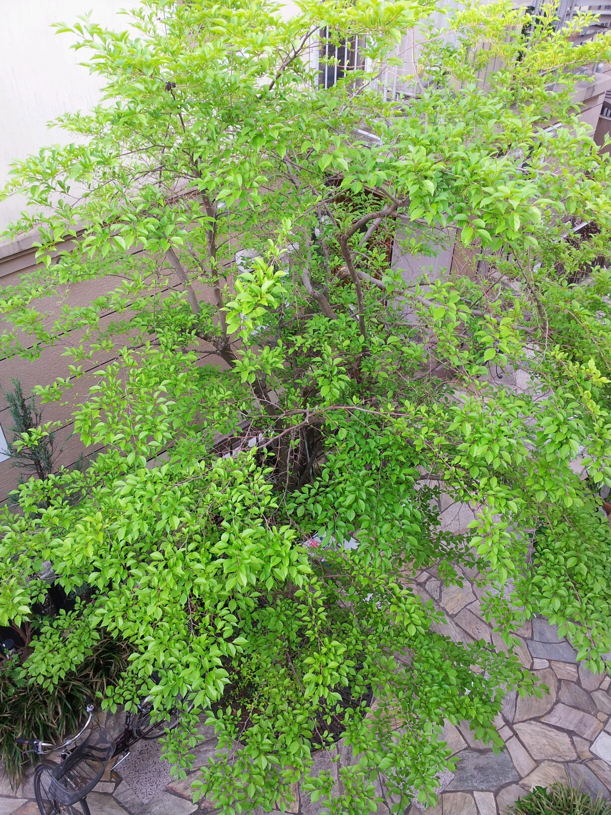パティオの真ん中につい最近まで裸ん坊だったのに見事にドレスアップ、命を感じます。STAP細胞どうなんでしょう?本日の会見興味津々な清実さんでした。