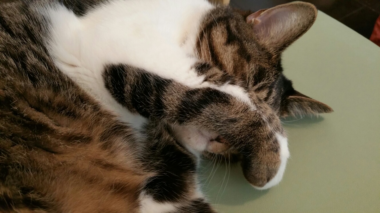 タイトルはハズカシイーに。よくこうして眠ります。今日からお休みを頂きます。クラス等々メンバーの協力により安心してぐでーっとさせて貰います。ありがとう❗また報告致します。腹心の友おーこちゃんと一緒です。清実でした。
